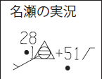 名瀬(奄美大島)では現在天気の情報から観測前1時間以内に雨があったことが示唆されます。図1の名瀬の現在天気欄には、直前まで降水があったが観測時には止んでいることを示す記号(雨のち止)が記録されています。この記号は一般に「過去1時間以内に降雨があった」場合に用いられるものです。したがって空欄⑧には「1」(時間)が該当し、「観測前1時間以内に雨があった」旨を補完します。